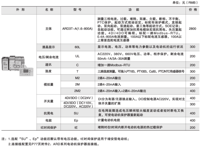 | ARD3T辅助电源 | AC/DC 110 / 220V或AC 380V,功耗≤15VA | ||
