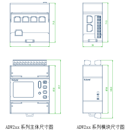 ADW2xx系列主体及模块尺寸图: