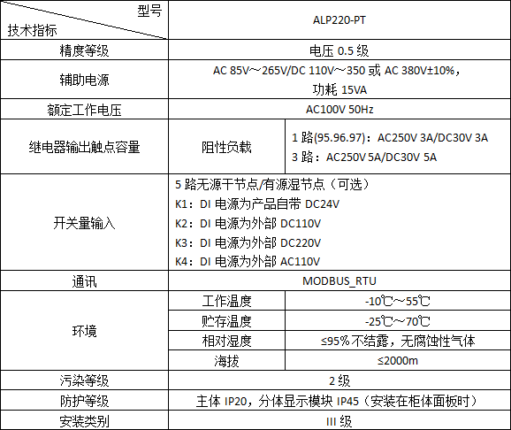 ALP系列低压保护器集保护、测量、控制、总线通讯为一体,同时提供了远程自动控制、现场直接控制、面板指示、信号报警、操作记录、跳闸报警记录及开关量记录等功能。应用范围: