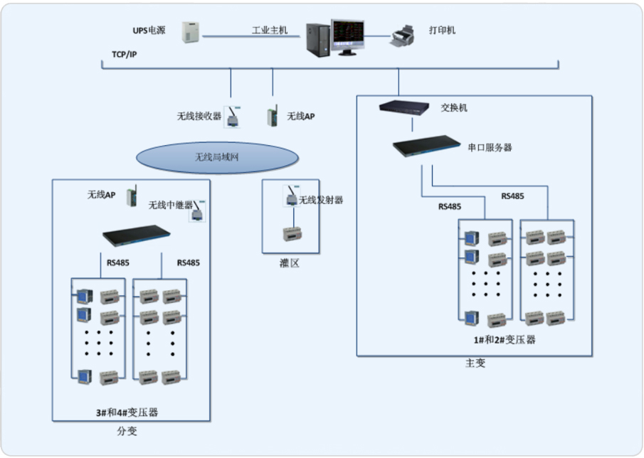 由于厂区大部分为防爆区,不允许大规模施工,所以灌装区、分变和主变之间均采用无线AP通信。